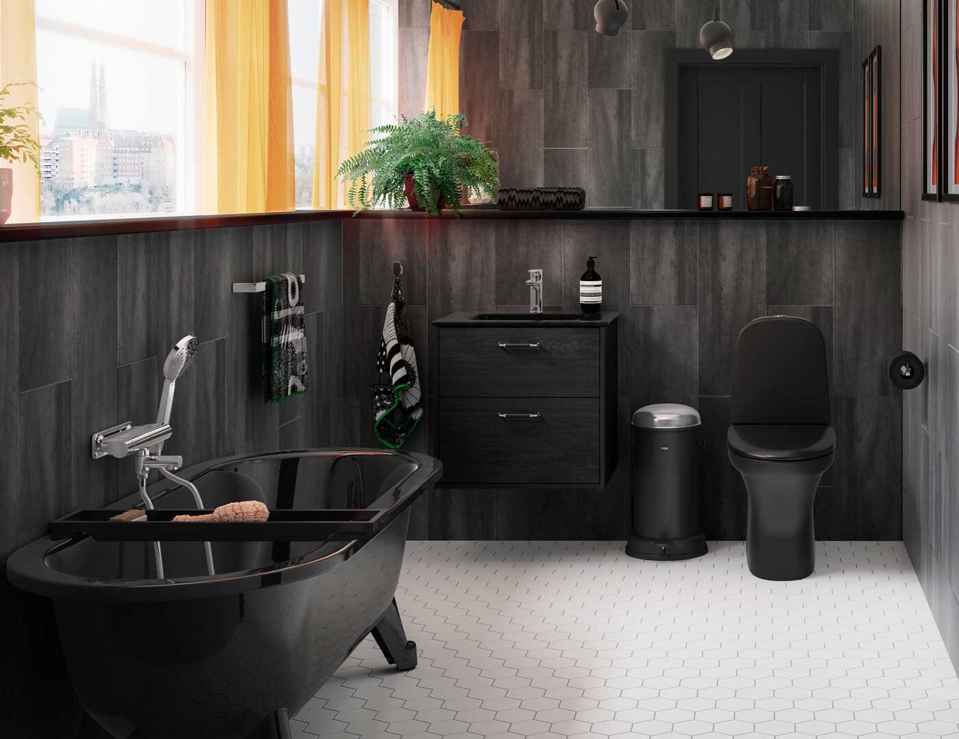 Det er også pænt at have badekarret stående lidt ude på gulvet og ikke klinet op ad en væg. (Hvis du spøger Fredrik Leander, synes han, at vi skal være lidt mere modige!) Hvis badeværelset ikke er så stort, kan det dog være en upraktisk løsning, som fylder for meget.