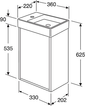 - Opening in cabinet for drain pipe towards the floor