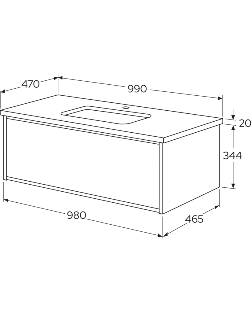 - Spacious drawer interior without the need for a cut-out for the water trap, creating more space for storage