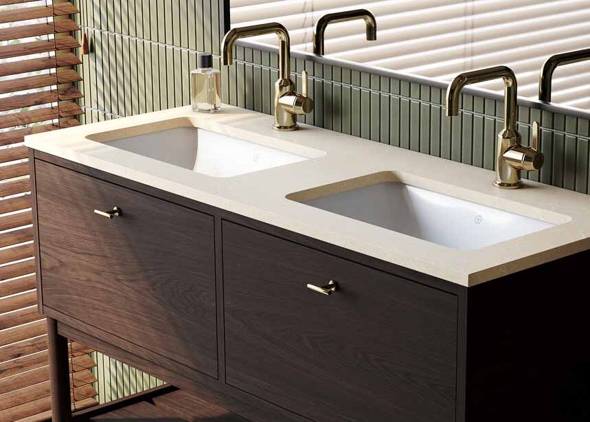 - Mässing i detaljer som blandare eller handtag och knoppar till badrumsskåp