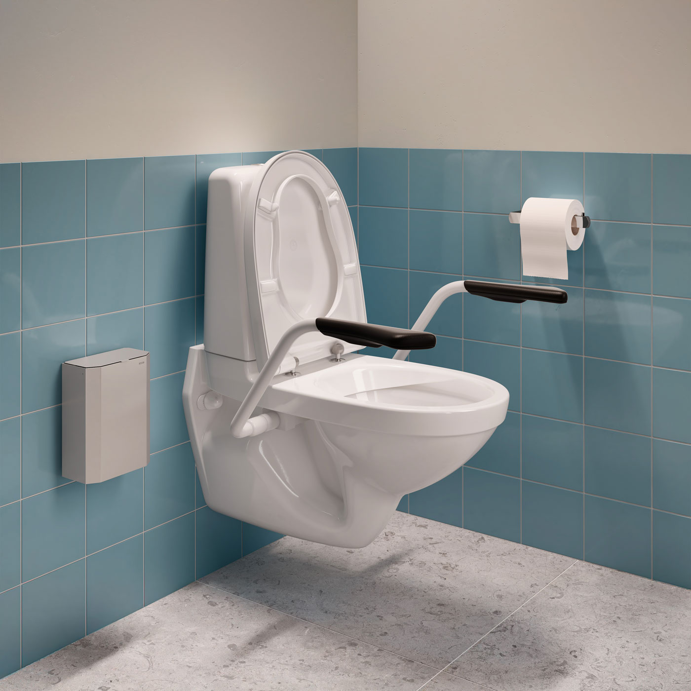 Vi har ett utvalt sortiment med produkter som kan komplettera redan monterade standardprodukter för att förbättra användarvänligheten. Bland annat finns det armstöd att montera på toalettsits, förlängd spak till tvättställsblandare och förhöjd spolknapp i en röd kontrasterande färg. Det ska vara enkelt att göra ett badrum mer användarvänlig – oavsett om det är i en offentlig miljö eller hemma i sin egen bostad.