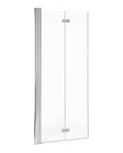 Dörrpar, vikbara slagdörrar med plant glas för hörnmontage. Finns i flera storlekskombinationer